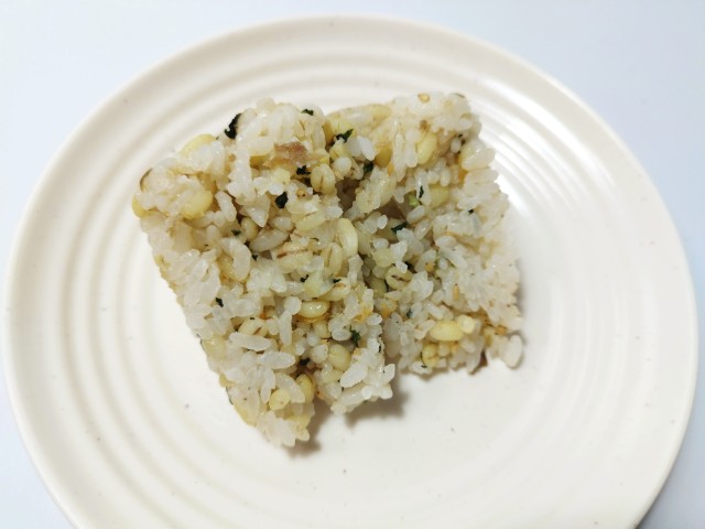 さばのほぐし身と野沢菜を使ったおむすびです。以前の購入が2025年10月7日発売だったので、約5ヶ月近く経っていますが、価格が165円(税込178円)から156円(税込168円)に変わっています。そんなさばのほぐし身と野沢菜が混ぜ込まれたご飯は、だしの風味とさばの味わいと野沢菜の食感があって、ハマってしまう美味しさです。また、ご飯にはもち麦も入っていて、もっちりとした食感がさらに食欲をかき立ててくれます。大きさは普通のおむすびサイズで、朝食や小腹が空いた時にピッタリです。ぜひさば野沢菜のおむすびを食べてみてください。