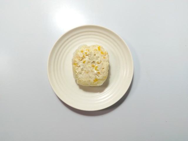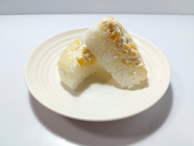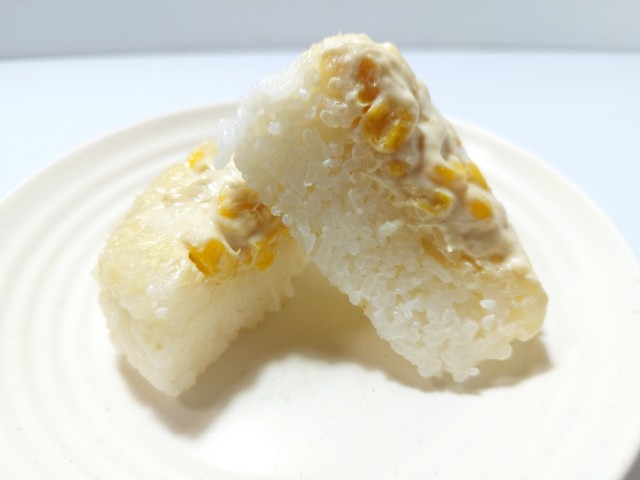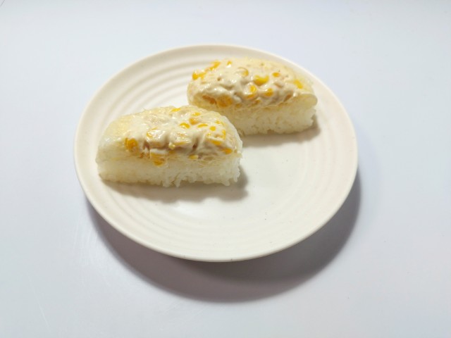 ツナとコーンがのったお寿司です。以前に同じような商品として、コーンマヨネーズ寿司(2024年10月15日発売)がありましたが、今回の商品はそこにツナが追加されています。そんなツナコーンマヨ寿司ですが、ツナはツナの旨味としっとりとした食感、コーンはコーンの甘味とシャキシャキとした食感で、相性抜群の組み合わせになっています。ポイントはツナとコーンに和えてあるマヨネーズで、マヨネーズのなめらかな味わいとほどよい酸味が、ツナやコーンの美味しさをさらに引き立てています。酢飯もやさしい酸味で具材の味を邪魔することなく、美味しく食べられます。大きさは普通のおむすびサイズで、小腹が空いた時や主食にあと一品追加したい時にピッタリです。ぜひツナコーンマヨ寿司を食べてみて下さい。