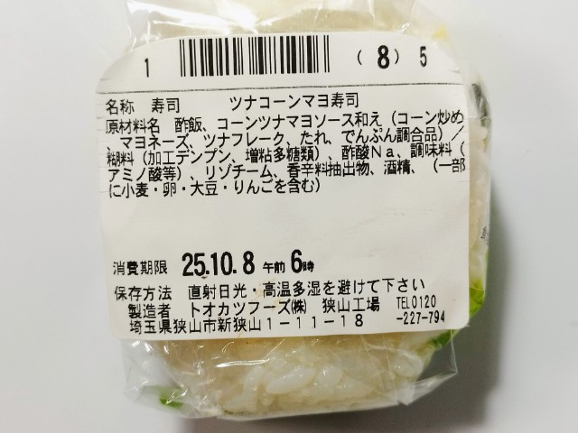 ファミリーマートの商品「ツナコーンマヨ寿司」を食べてみました。