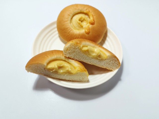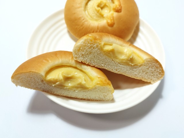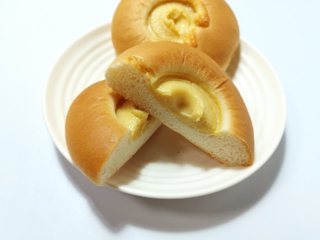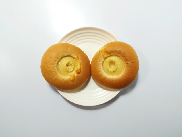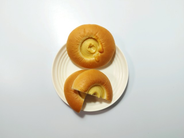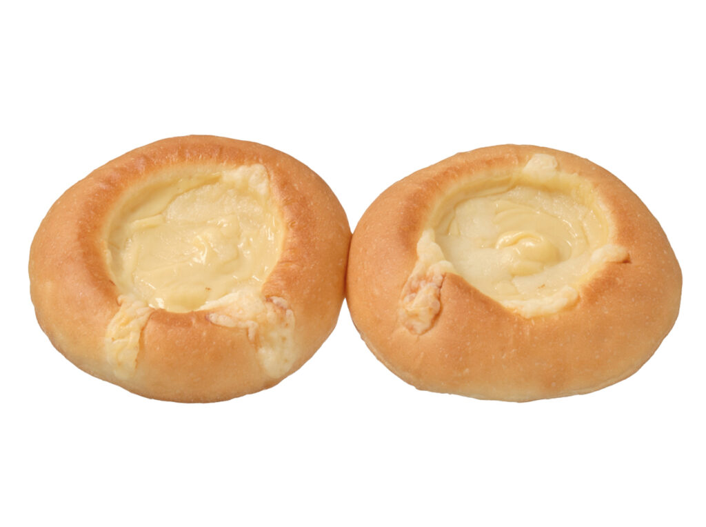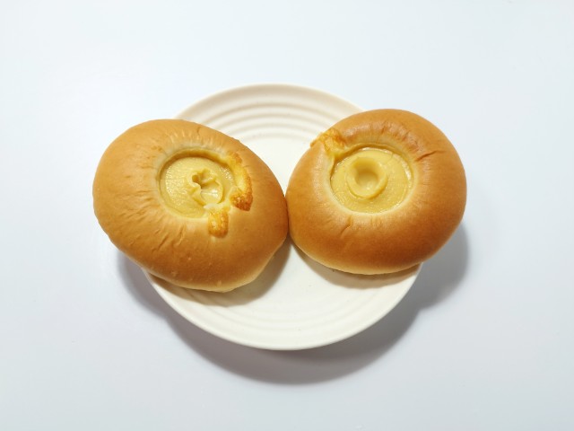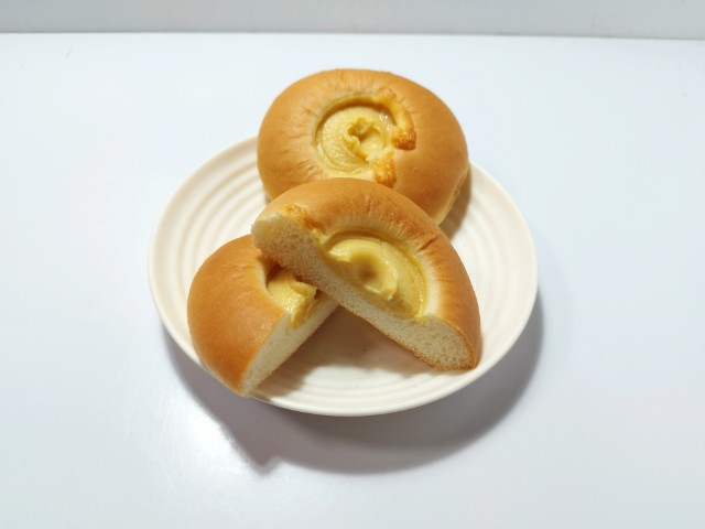 チーズがのったパンです。2個入のチーズパンで、シンプルな商品名とその見た目に興味をそそられて買ってみました。そんなチーズパンですが、生地はふんわりとした食感と歯切れの良さで、これだけでも美味しく食べ進められます。中央にはチェダー入りチーズとゴータ入りチーズがのっていて、チーズのなめらかな味わいとほどよい塩味があって、生地とのバランスも良いです。今回はそのまま食べましたが、余裕があればトースターで軽く温めるとチーズのなめらかさとパンの香ばしさがアップすると思います。2個入ですが、1個は手のひらサイズくらいなので、一人でも普通に食べ切れます。もちろんシェアするにもピッタリです。ぜひチーズパンを食べてみて下さい。