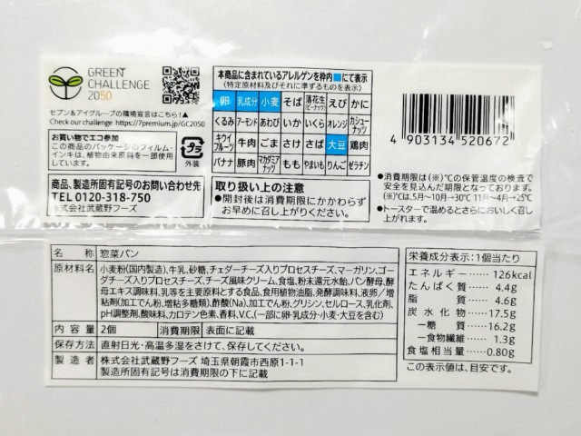 セブンイレブンの今週の新商品「7プレミアム チーズパン 2個入」を食べてみました。