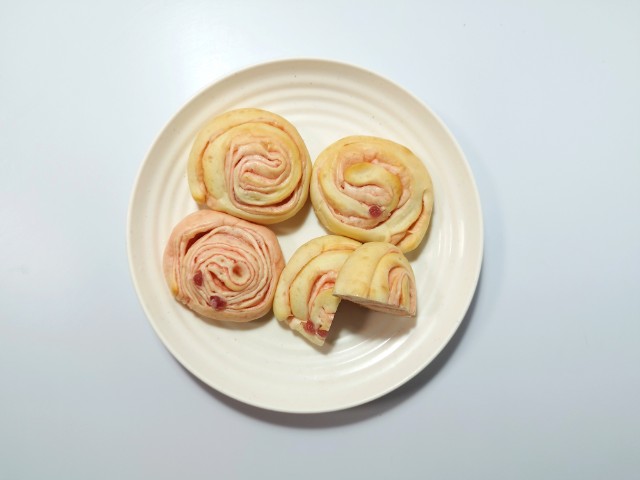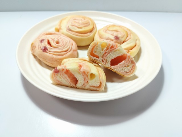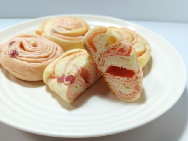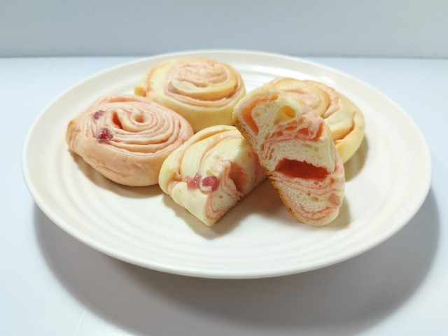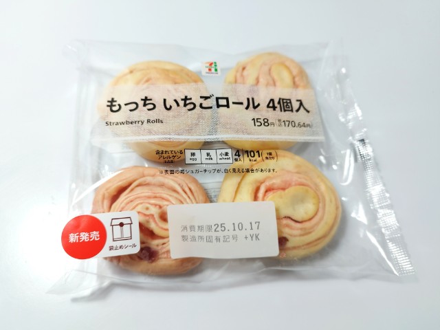 いちごロールです。以前に7プレミアム もっちチョコロール4個入(2025年2月25日発売)がありましたが、今回はいちごになっています。そんないちごロールですが、生地もちもちとした食感歯切れの良さで、安定の美味しさです。生地にはいちごフラワーペーストが折り込まれていて、いちごの風味ほのかな酸味を楽しむ事が出来ます。全体的には甘過ぎない菓子パンといった感じで、甘いのがちょっと苦手な方にも食べやすいと思います。4個入ですが、1個手のひらサイズくらいなので、一人でも食べ切れます。もちろんシェアするにもピッタリです。ぜひいちごロールを食べてみて下さい。