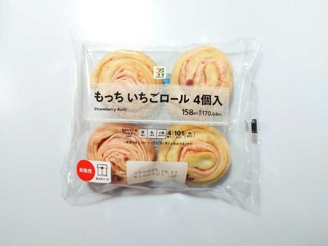 セブンイレブンの今週の新商品「7プレミアム もっち いちごロール 4個入」を食べてみました。