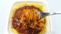 メンチカツとスパゲティがのったお弁当です。おかズドン!油淋鶏弁当(2025年7月1日発売)やおかズドン!黒胡椒にんにくだれ鶏唐揚弁当(2025年3月18日発売)など色々と出ているおかズドン!ですが、第7弾はメンチカツになっています。そんなWソースのメンチカツ弁当ですが、厚みのあるメンチカツは肉の旨味とジューシーな肉質で、食べ応えがあります。メンチカツにはとんかつソースとケチャップといった2種類のソースが使われていて、それぞれの味の違いを楽しめるので、最後まで飽きることなく食べられます。内容量は1食分にちょうどよく、お腹も満たされます。ぜひおかズドン!Wソースのメンチカツ弁当を食べてみて下さい。