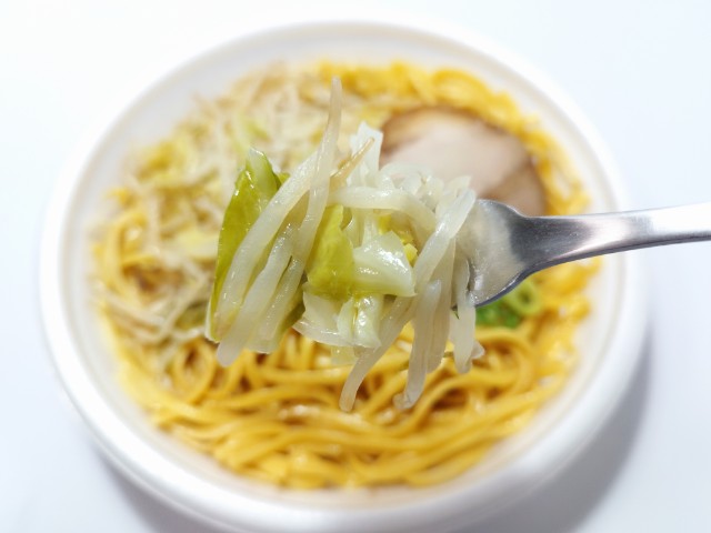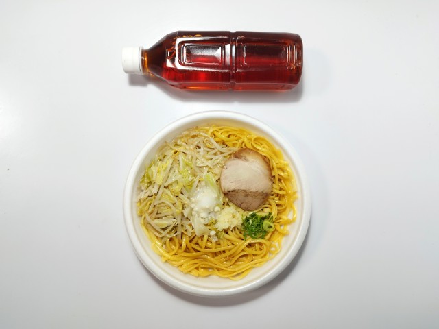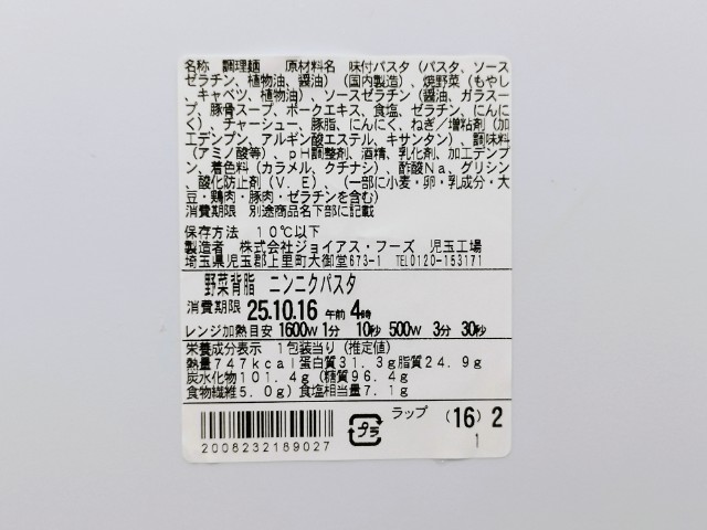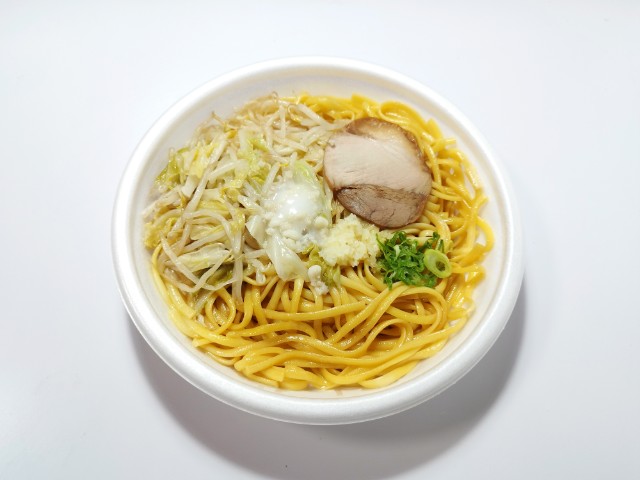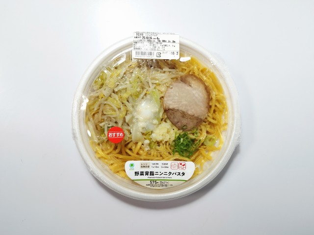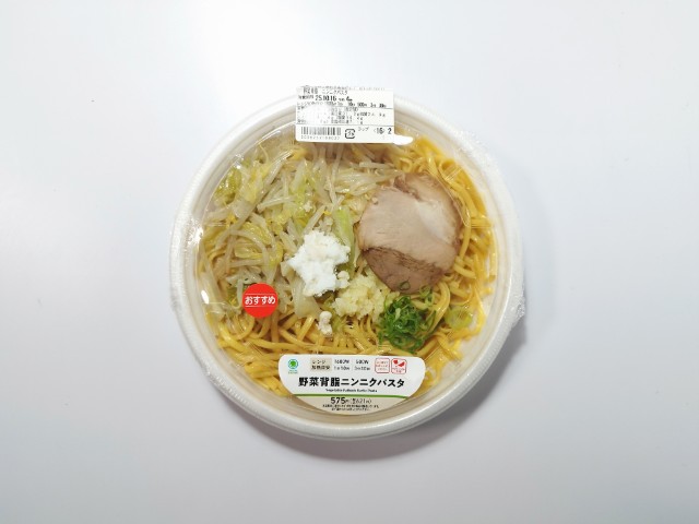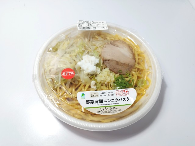 ファミリーマートの商品「【関東の一部】野菜背脂 ニンニクパスタ」を食べてみました。
