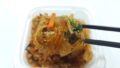 野菜や背脂がのったパスタです。背脂とパスタの組み合わせに興味をそそられて、思わず買ってしまいました。そんなニンニクパスタですが、醤油の風味と豚のコク、にんにくの味わいがあって、ハマってしまう美味しさです。特にこってりとした味わいとたっぷりの脂はパスタというよりもラーメンに近い印象で、フォークよりも箸で食べたくなります。リングイネのパスタはモチモチとした食感と小麦の風味で、濃厚な味付けにも負けていません。ただ、パスタが脂をまとっている事で、フォークで巻きとりづらく、前述にもあるように箸で食べるのがベストだと思います。具材には背脂を始め、チャーシューやもやし、キャベツ、刻みにんにくなどがのっていて、それぞれの味や食感を楽しめます。内容量は1食分にちょうどよく、お腹も満たされます。ぜひ野菜背脂のにんにくパスタを食べてみて下さい。