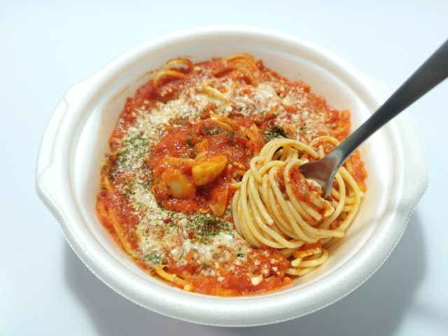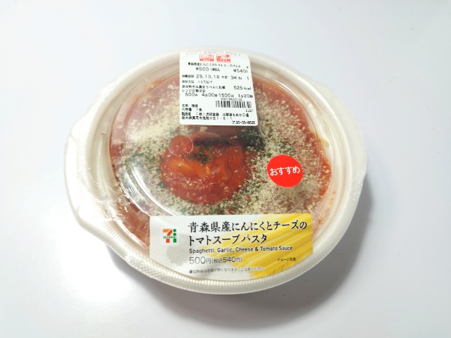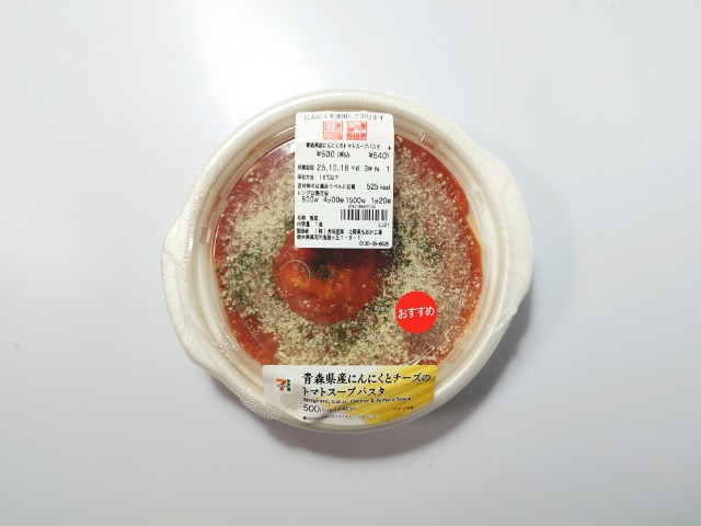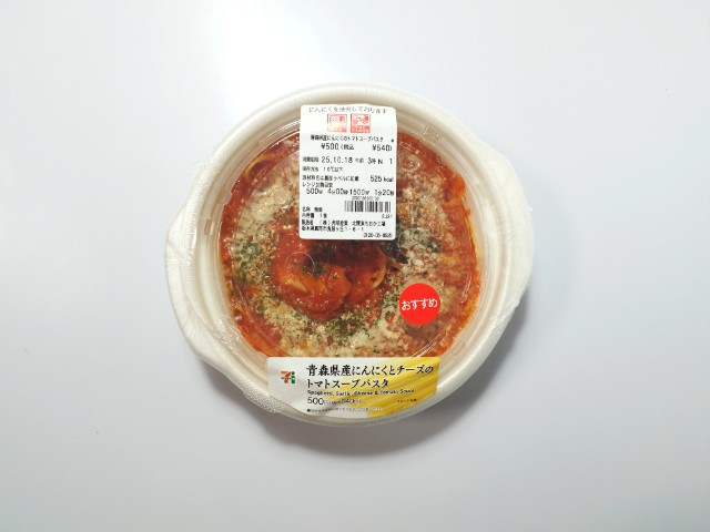 セブンイレブンの商品「青森県産にんにくのトマトスープパスタ」を食べてみました。