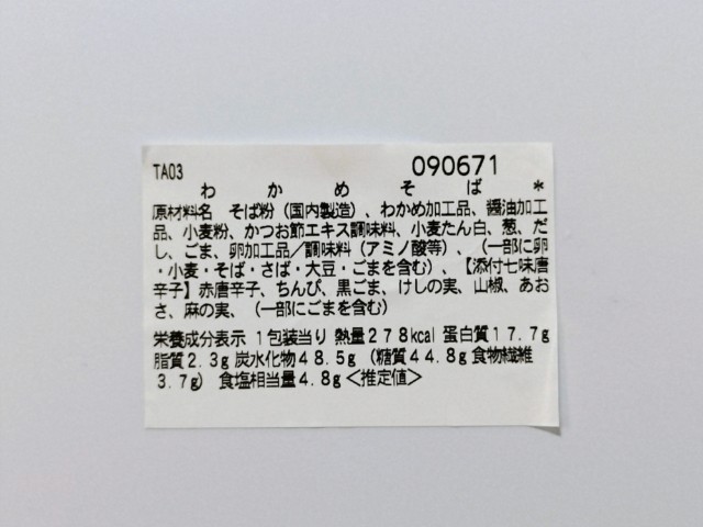 セブンイレブンの商品「わかめそば」を食べてみました。