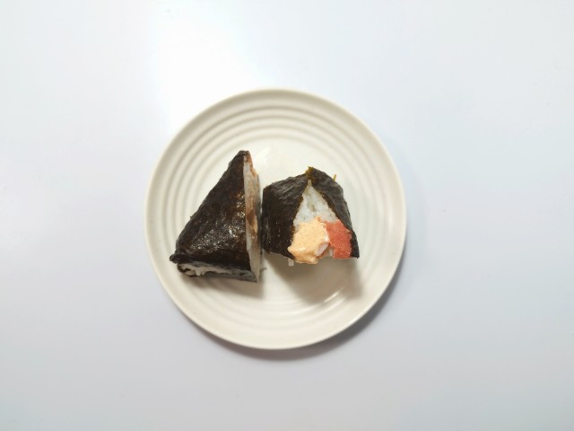 明太マヨネーズとたらこの旨さ相盛おむすびを美味しくいただきますっ!!