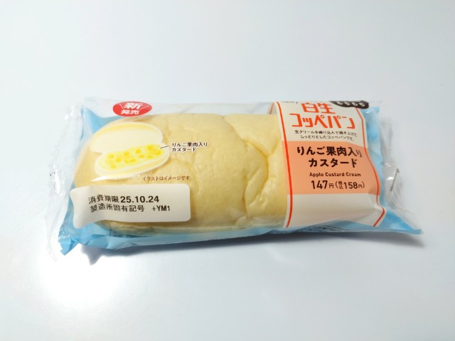 ファミリーマートの今週の新商品「白生コッペパン(りんご果肉入りカスタード)」を食べてみました。