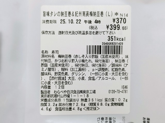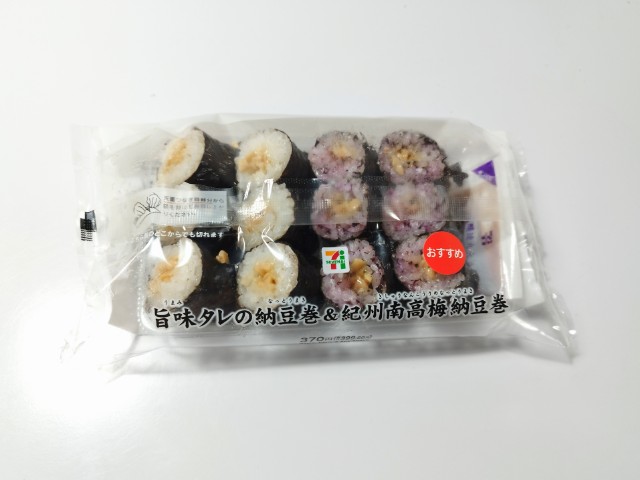 納豆巻と紀州南高梅納豆巻が6個ずつ入っています。