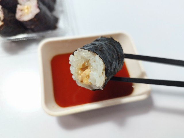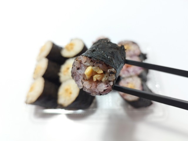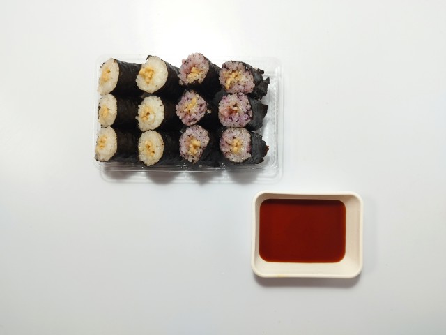 納豆巻と紀州南高梅納豆巻の詰め合わせです。12個の細巻寿司が入った納豆づくしの商品で、個人的には楽しみにしていた新商品の一つでもあります。そんな旨味タレの納豆巻&紀州南高梅納豆巻ですが、納豆巻は納豆の旨味と酢飯のほどよい酸味で、間違いのない美味しさです。紀州南高梅納豆巻は納豆の旨味はもちろん、そこに梅の酸味が加わる事で、後味がさっぱりとしています。飽きのこない味わいで、カップ麺やスープなどにも合わせやすいと思います。内容量は1食分にちょっと少ないかもですが、軽く済ませたい時や小腹が空いた時にはちょうどよいと思います。ぜひ旨味タレの納豆巻&紀州南高梅納豆巻を食べてみて下さい。