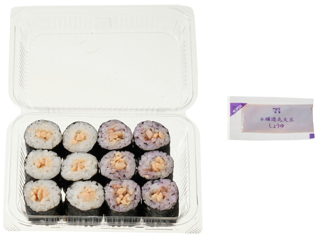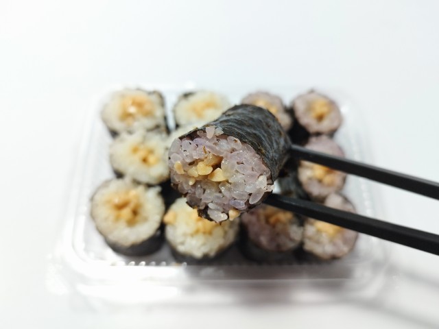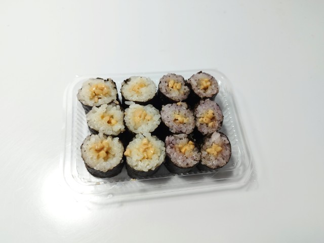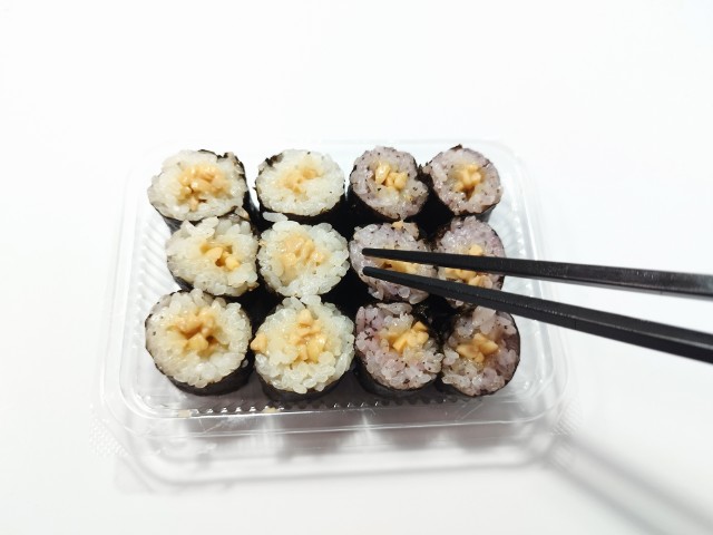 納豆巻と梅納豆巻が6個ずつ入っています。