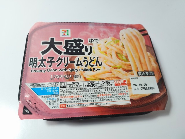 セブンイレブンの今週の新商品「7プレミアム 大盛り明太子クリームうどん」を食べてみました。