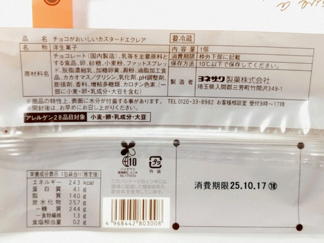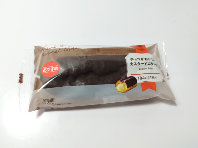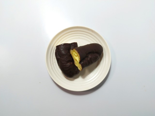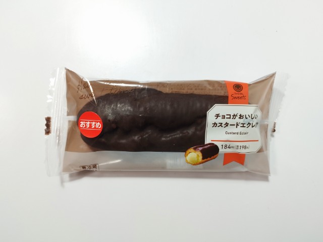 ファミリーマートの商品「チョコがおいしいカスタードエクレア」を食べてみました。