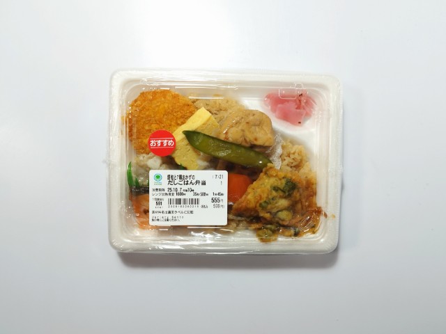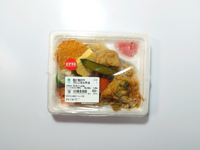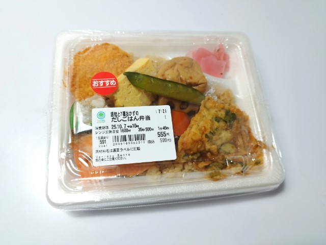 銀鮭と7種類のおかずがのったお弁当です。以前に同じような商品として、銀鮭と煮物の幕の内弁当(2025年7月15日発売)がありましたが、今回の商品はご飯がだしご飯になっています。一応、ファミリーマート公式の商品説明もほぼ同じような感じではありますが、リニューアルなのか新商品なのか、ちょっと判断しづらいので、今回は別物として紹介しています。そんな銀鮭と7種おかずのだしごはん弁当ですが、だしご飯はだしの旨味と醤油の風味があって、これだけでも美味しく食べ進められます。銀鮭はふっくらとした食感とほどよい塩味、コロッケはソースの酸味とじゃがいもの味わい、煮物はだしの旨味と人参やれんこんといった食材の食感を楽しめます。他にも玉子焼き、かき揚げ、シュウマイなどバラエティ豊かなので、最後まで飽きる事なく食べられます。内容量は1食分にちょうどよく、お腹も満たされます。ぜひ銀鮭と7種おかずのだしごはん弁当を食べてみて下さい。