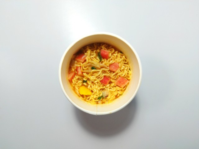 レッドシーフードヌードルです。レッドシーフードヌードルという言葉で、味のイメージがつく位にかなり浸透してきたフレーバーですが、今回は7プレミアムから新登場したので、さっそく買ってみました。そんなレッドシーフードヌードルですが、スープは魚介の旨味と唐辛子のピリッとした辛味で、クセになってしまう美味しさです。麺はツルっとした食感と歯切れの良さで、スープともよく合います。具材にはかに風味かまぼこやイカ、キャベツ、味付卵などが入っていて、それぞれの味や食感を楽しめます。正直、そこまで辛味があるわけではないので、辛味がちょっと苦手な方でも食べやすいと思います。内容量は普通のカップ麺サイズで、小腹が空いた時やおにぎりやパンと合わせて1食分にするのにもオススメです。ぜひレッドシーフードヌードルを食べてみて下さい。