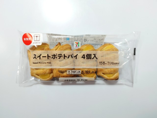 セブンイレブンの今週の新商品「7P スイートポテトパイ4個入」を食べてみました。