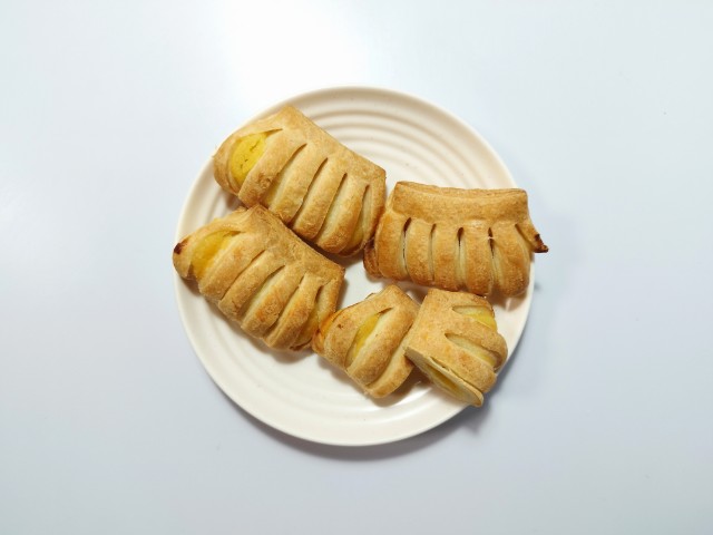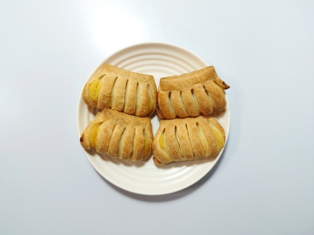 歯切れの良いパイ生地に、スイートポテト餡とカスタードクリームを包んだミニサイズのスイーツパイ。
