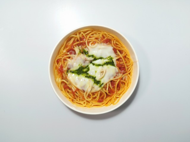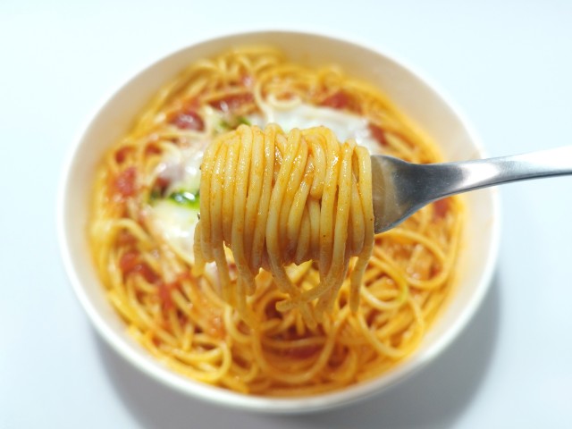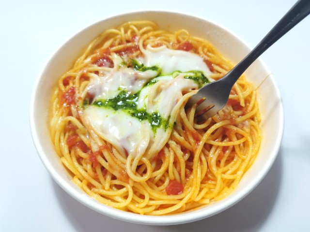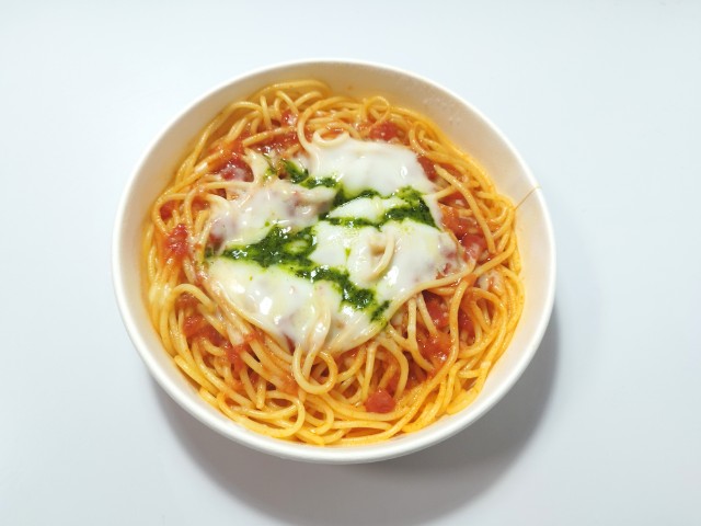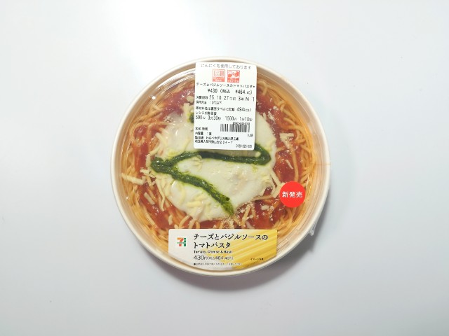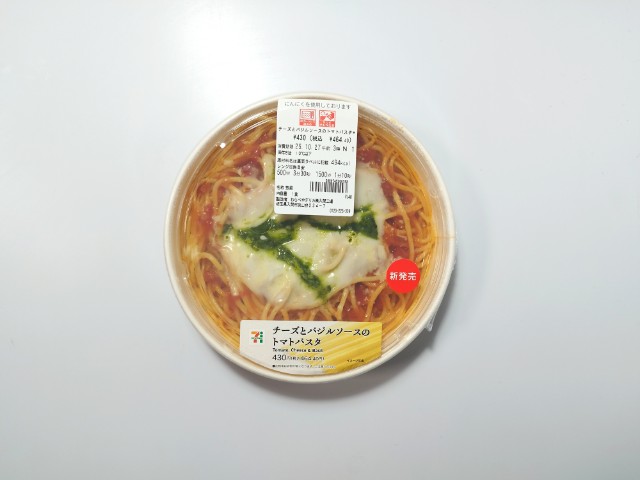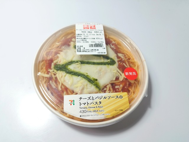 セブンイレブンの今週の新商品「チーズとバジルソースのトマトパスタ」を食べてみました。