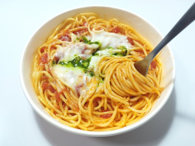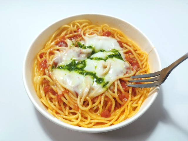 チーズとバジルソースのトマトパスタが気になるっ!!って事で、
