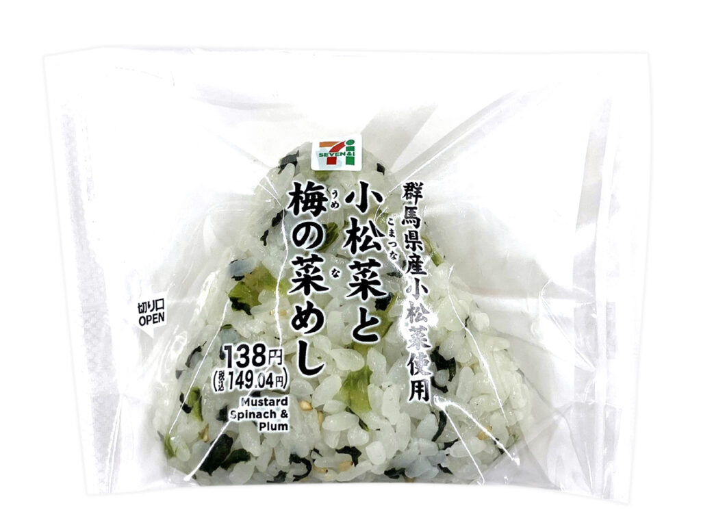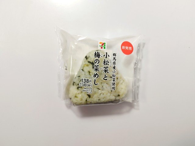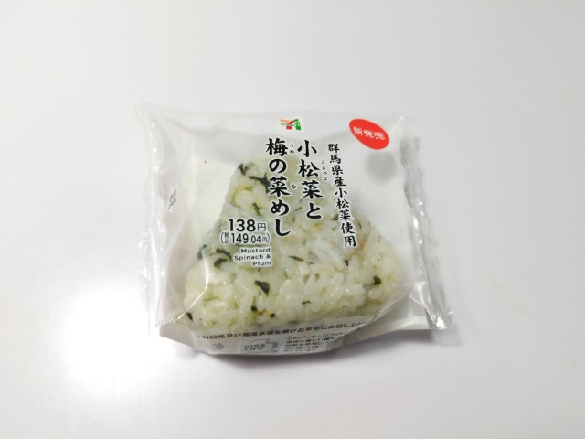 セブンイレブンの今週の新商品「小松菜と梅の菜めしおむすび」を食べてみました。