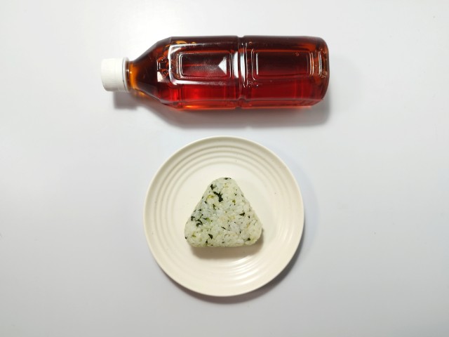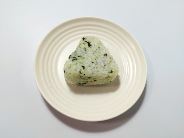 群馬県産小松菜をご飯に混ぜ込んだおむすびです。中具には梅を入れ、さっぱりとしたおむすびに仕立てました。