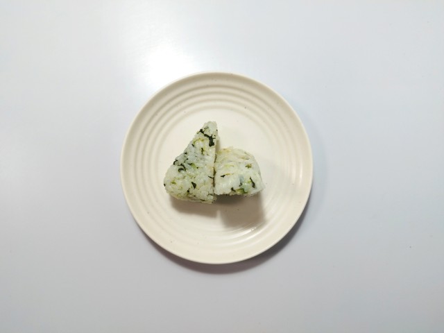 小松菜と梅の菜めしおむすびを美味しくいただきますっ!!