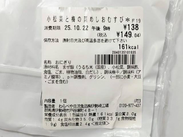 小松菜と梅の菜めしおむすびが気になるっ!!って事で、