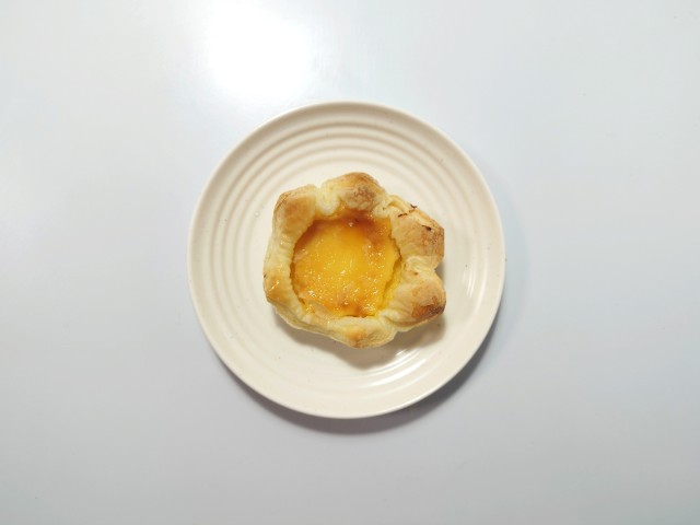 フランがのったタルトです。ちなみにフランをネットで調べたところ、タルト生地カスタードクリームを流し込んで焼いた、フランスの伝統的なスイーツだそうです。そんなタルト・オ・フランですが、パイ生地サクサクとした食感歯切れの良さで、これだけでも美味しく食べ進められます。中央にはフラン生地がのっていて、とろふわ食感たまごのコクがあって、パイ生地とのバランスも良いです。大きさは手のひらサイズくらいで、おやつ小腹が空いた時にピッタリです。ぜひタルト・オ・フランを食べてみて下さい。