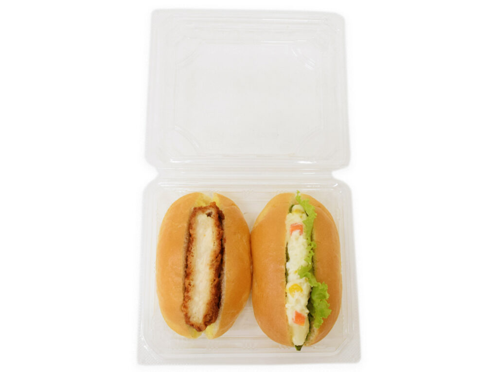 チキンカツとポテトサラダの2種類の具材が楽しめる、手軽に持ち運びやすいボックスタイプのロールパンです。