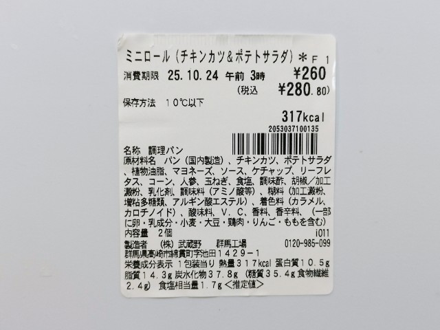 チキンカツ&ポテトサラダのミニロール楽しみです。