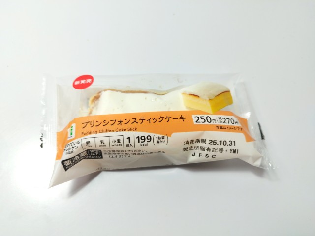 セブンイレブンの今週の新商品「7プレミアム プリンシフォンスティックケーキ」を食べてみました。