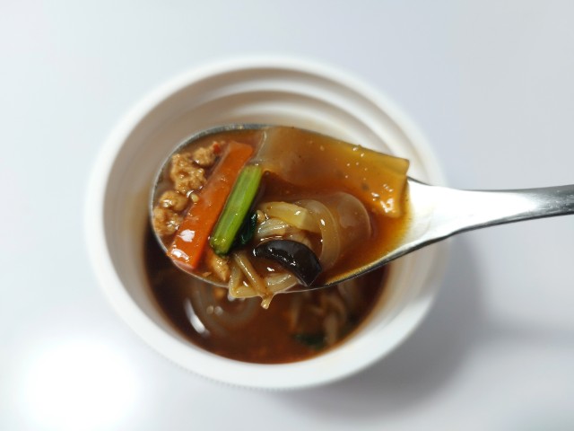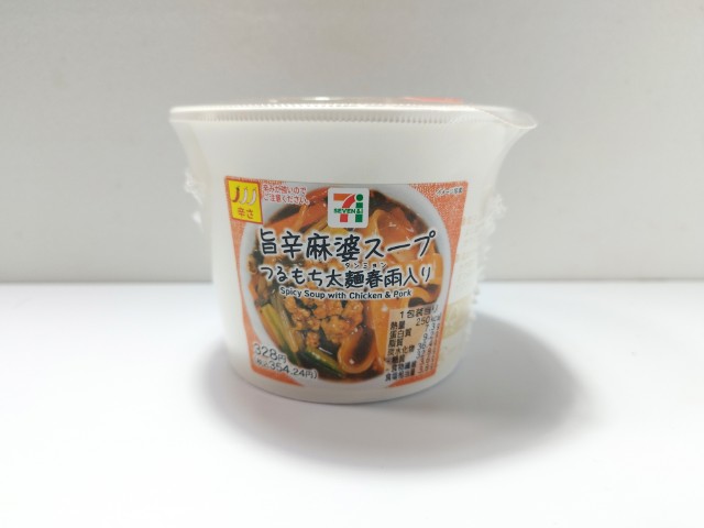 セブンイレブンの商品「旨辛麻婆スープ つるもち太麺春雨入り」を食べてみました。