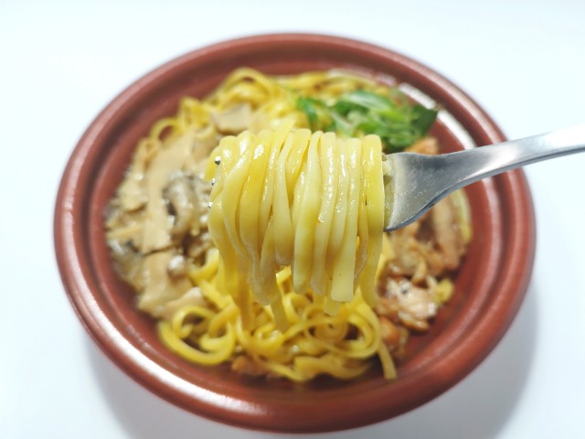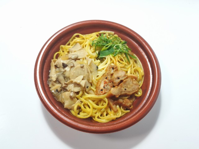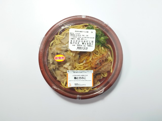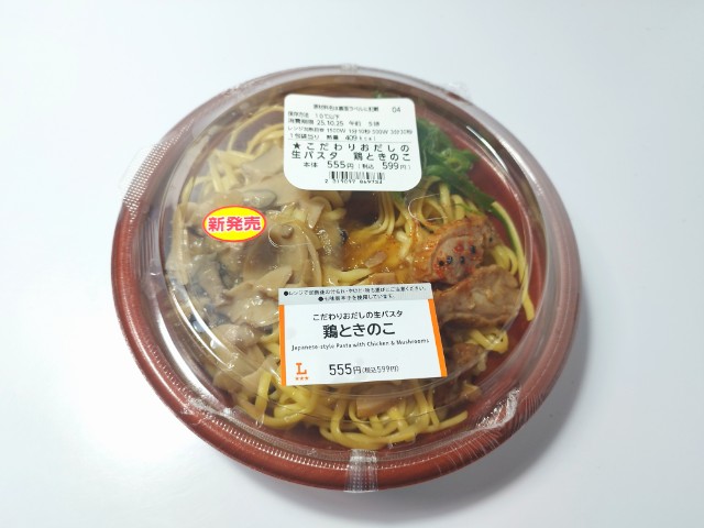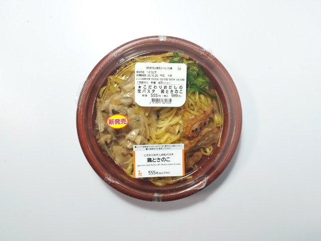 ローソンの今週の新商品「こだわりおだしの生パスタ 鶏ときのこ」を食べてみました。