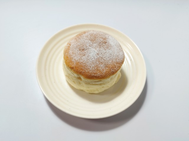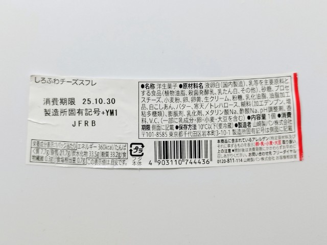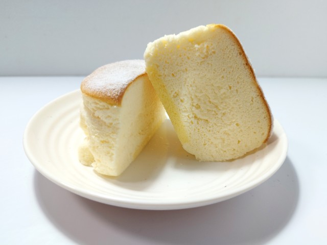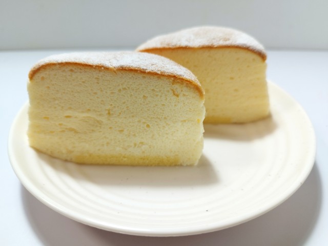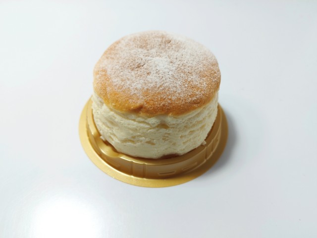 3号サイズのチーズスフレです。以前に7プレミアム おいものスフレ 3号(2025年9月2日発売)や7プレミアム レモン香るカマンベールチーズスフレ3号(2025年6月24日発売)などがありましたが、今回はチーズケーキを使った商品になっています。ちなみに以前にも記述はしましたが、3号サイズをネットで調べたところ、ケーキの一般的なサイズは1号サイズで直系3cmだそうで、3号サイズだと直径9cmとなって、大体1人~2人分くらいのケーキだそうです。そんなしろふわチーズスフレですが、チーズの風味とふわしゅわ食感、やさしい甘味があって、間違いのない美味しさです。また、上にかかった粉糖のほのかな甘味が味のアクセントになっています。大きさは前文にも記述の通りで、体感だと1.5人分くらいといった感じなので、ガッツリ食べたい方にはちょうどよく、二人で分けても十分楽しめるサイズだと思います。ぜひしろふわチーズスフレを食べてみて下さい。