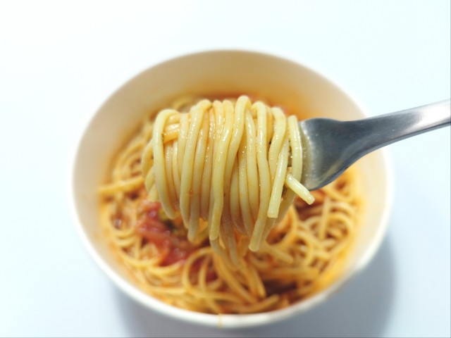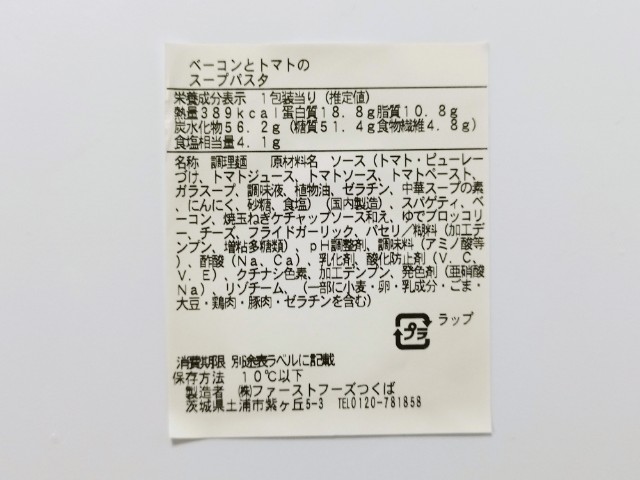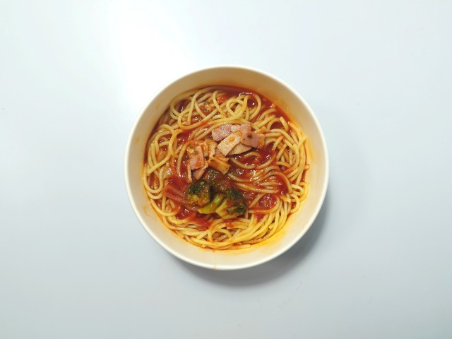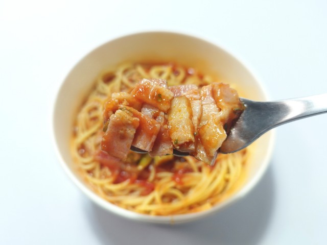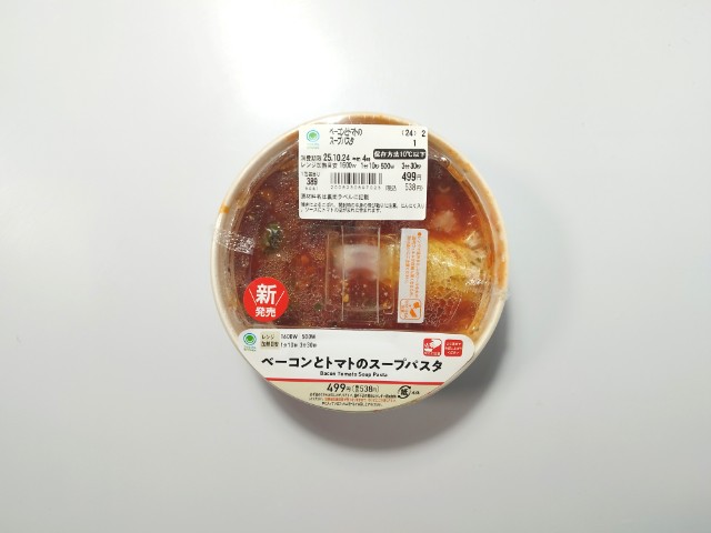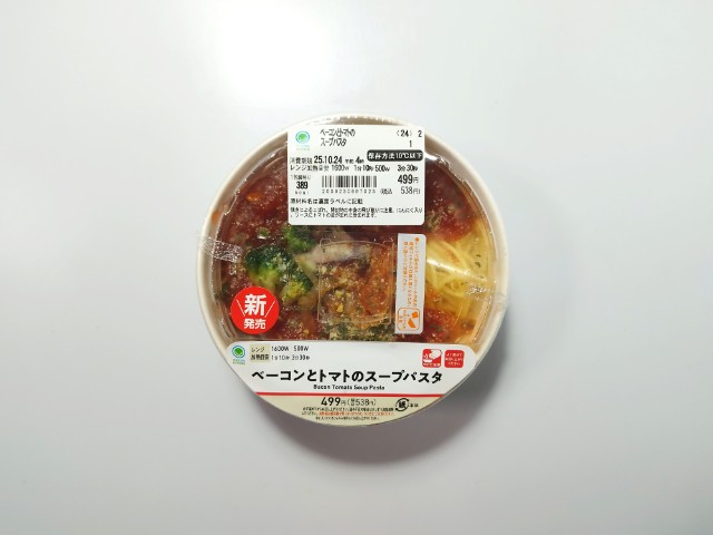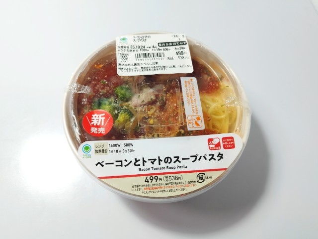 ファミリーマートの商品「ベーコンとトマトのスープパスタ」を食べてみました。