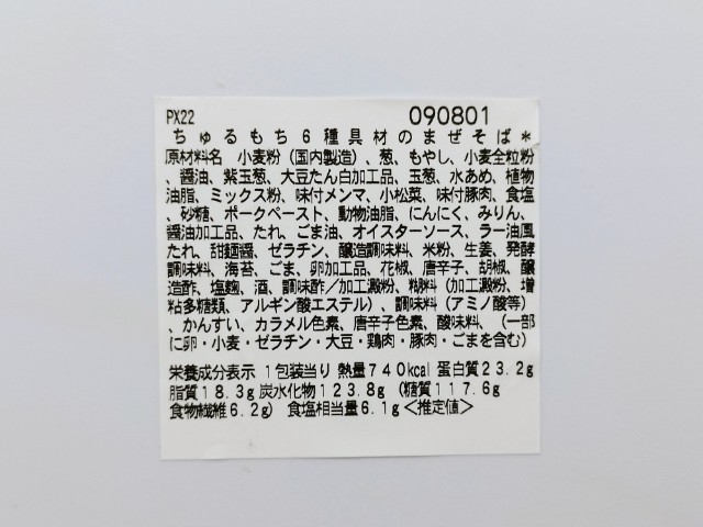 熱量:740kcal、たんぱく質:23.2g、脂質:18.3g、炭水化物:123.8g(糖質:117.6g、食物繊維:6.2g)、食塩相当量:6.1g