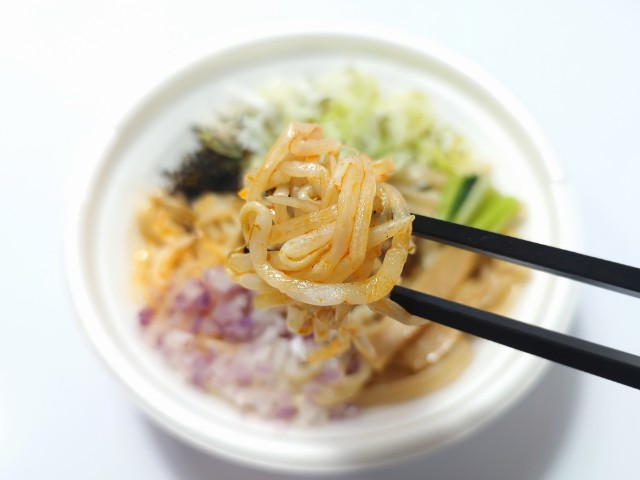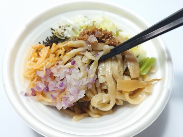 セブンイレブンの今週の新商品「ちゅるもち6種具材のまぜそば」を食べてみました。