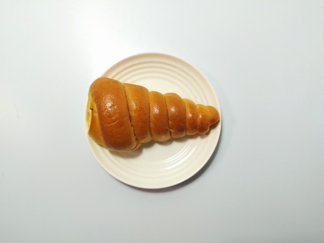 チョココロネパンです。ちなみにノラネコぐんだんをネットで調べたところ、工藤ノリコさん作の白泉社の人気絵本シリーズで、8匹のノラネコたちが思いつきで悪だくみをしますが、いつも「ドッカーン!」と大騒動を起こして失敗し、真面目なワンワンちゃんにこっぴどく叱られるというストーリーが特徴だそうです。そんなノラネコぐんだんのチョココロネパンですが、生地はしっとりとした食感とくちどけの良さで、安定の美味しさです。中にはチョコクリームが入っていて、なめらかな食感とチョコの甘味で、生地とのバランスも良いです。シンプルなチョココロネパンといった印象ですが、チョココロネのイメージそのもので、失敗することはないと思います。大きさは普通の菓子パンサイズで、おやつや小腹が空いた時にピッタリです。ぜひノラネコぐんだんのチョココロネパンを食べてみて下さい。