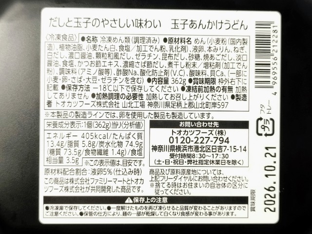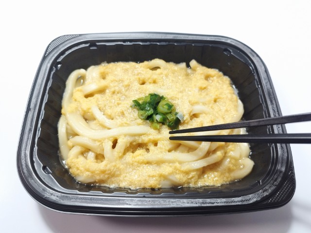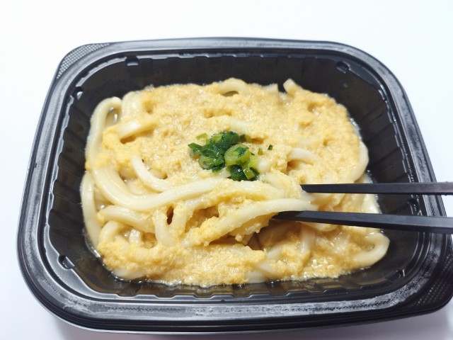 ファミリーマートの今週の新商品「だしと玉子のやさしい味わい玉子あんかけうどん」を食べてみました。