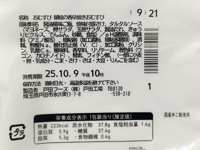 ファミリーマートの商品「【関東】銀鮭の香草焼きおむすび(タルタルソース)」を食べてみました。