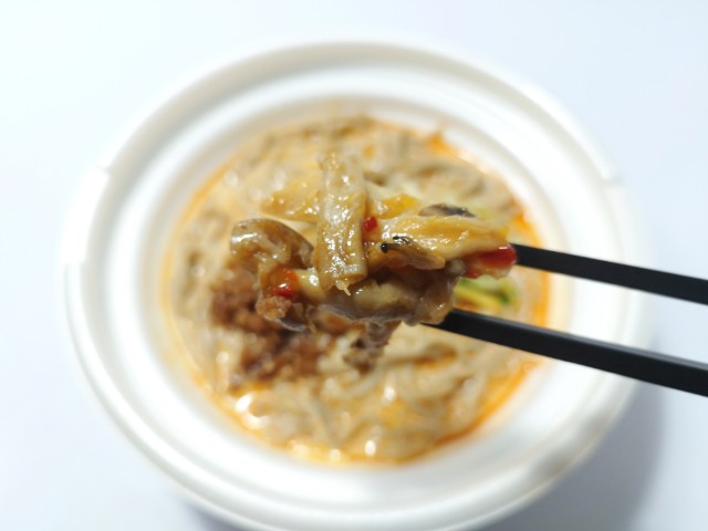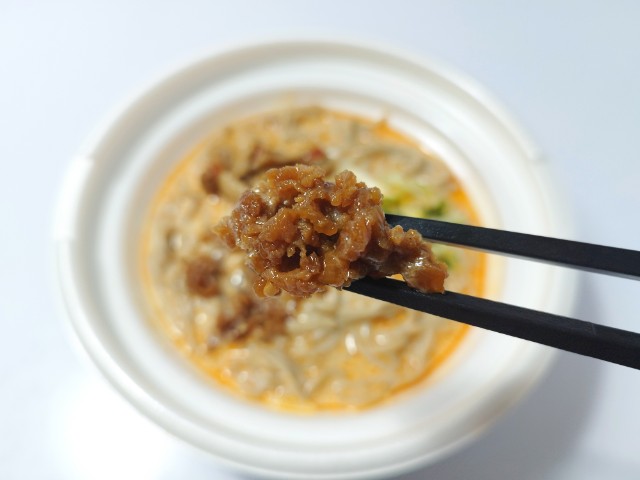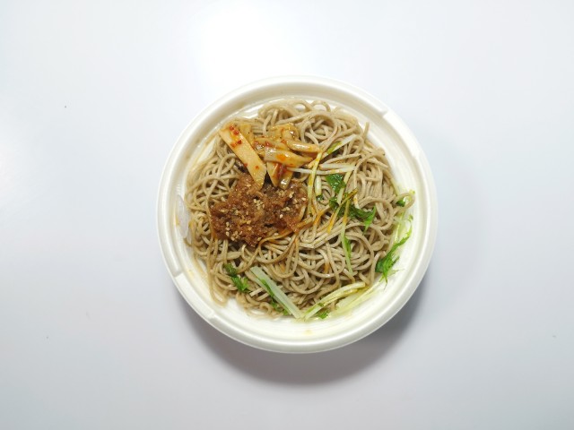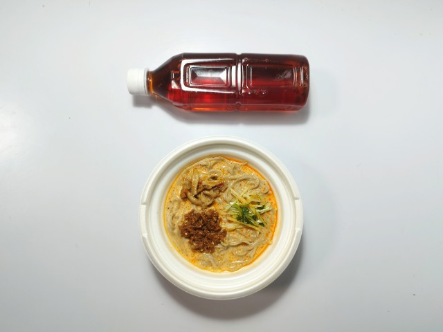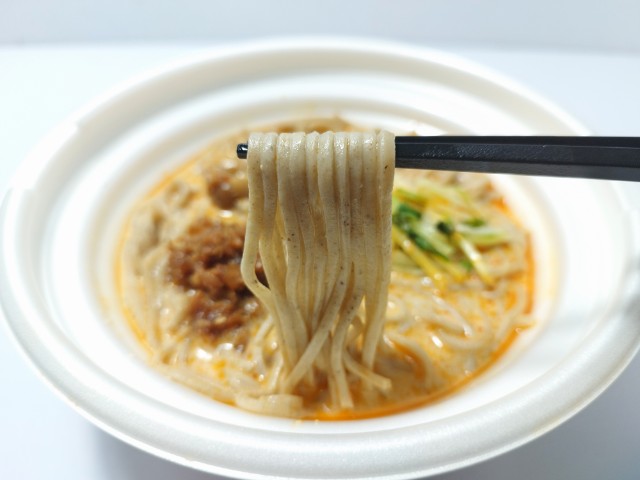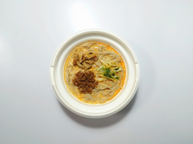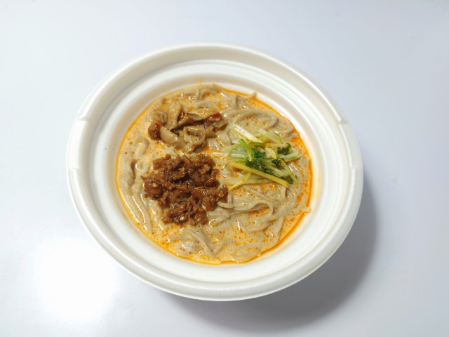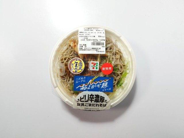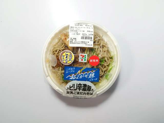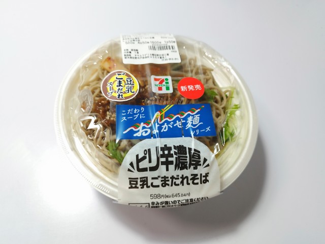 セブンイレブンの今週の新商品「ピリ辛濃厚豆乳ごまだれそば」を食べてみました。