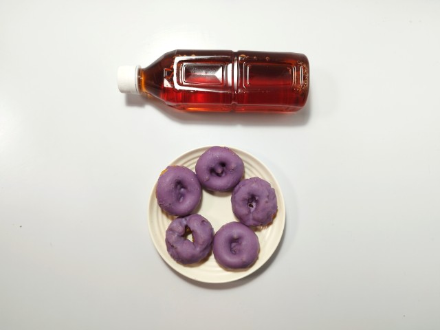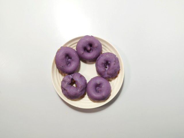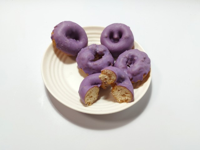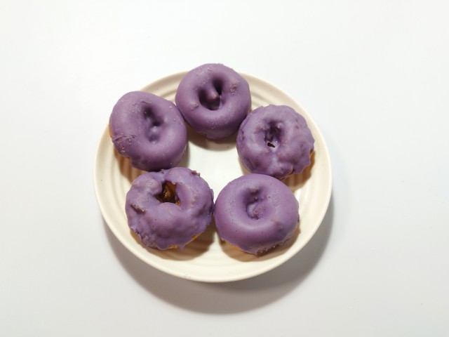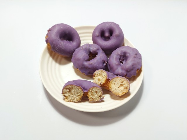 ドーナツにはブルーベリーシュガーグレーズがかかっています。