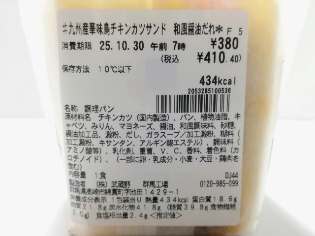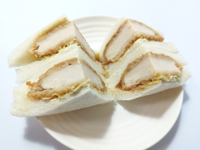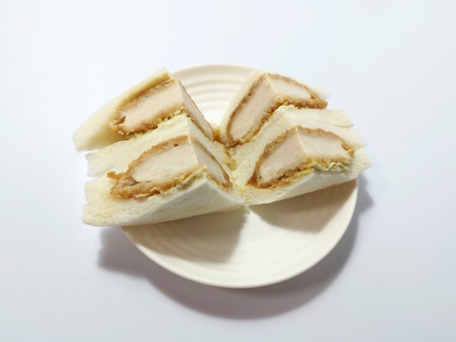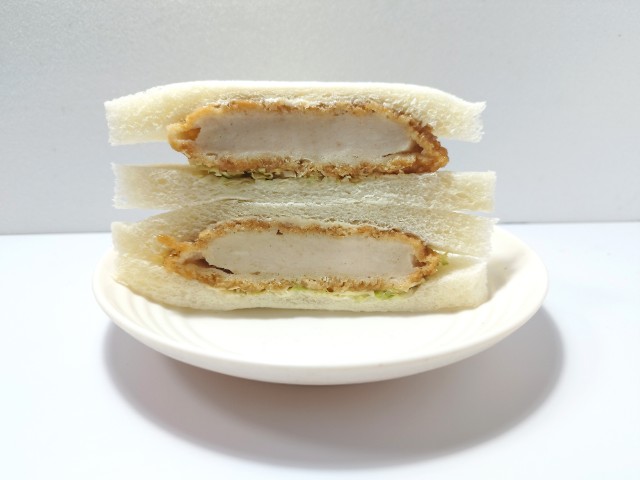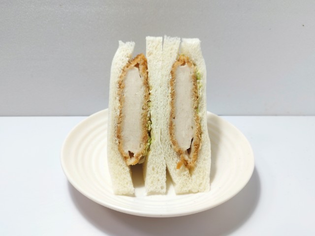 チキンカツを挟んだサンドイッチです。以前に九州産華味鳥チキンカツサンド(2025年9月3日発売)がありましたが、今回は味付けが和風醤油だれになっています。ちなみにチキンカツの鶏肉は九州産華味鳥が使われているそうで、気になってネットで調べたところ、海藻やハーブ、木酢液などを混ぜ合わせた専用飼料を使って、自然に近い環境で育てられた鶏で、健康的に育った美しいピンク色の身がまるで花びらのような見た目をしていることから華味鳥と付けられたそうです。そんなチキンカツサンドですが、チキンカツは鶏の旨味と柔らかい肉質で、間違いのない美味しさです。和風醤油だれはだしの旨味と醤油の風味、甘辛い味わいで、チキンカツとの相性抜群です。他にもマヨネーズ和えのキャベツが一緒に挟まっていて、味や食感を楽しめます。大きさは普通のサンドイッチサイズで、小腹が空いた時や主食にあと一品追加したい時にピッタリです。ぜひ和風醤油だれの九州産華味鳥チキンカツサンドを食べてみて下さい。