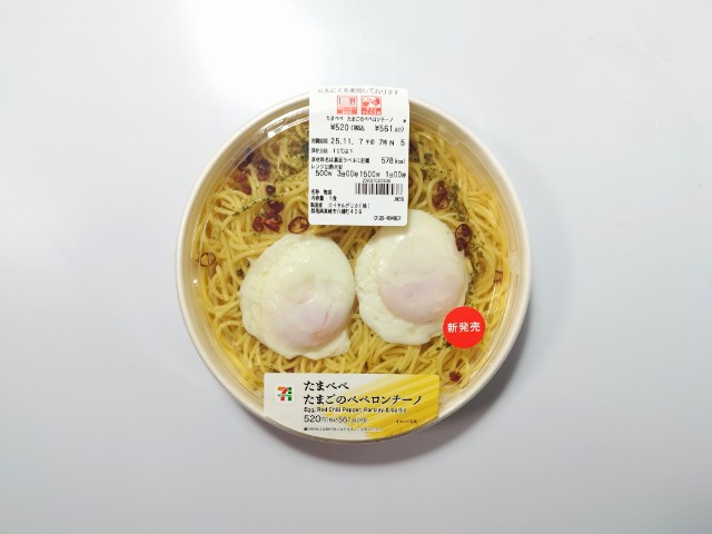 たまぺぺ たまごのペペロンチーノ【セブンイレブン】半熟たまごがのったペペロンチーノです!!
