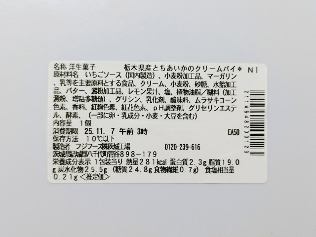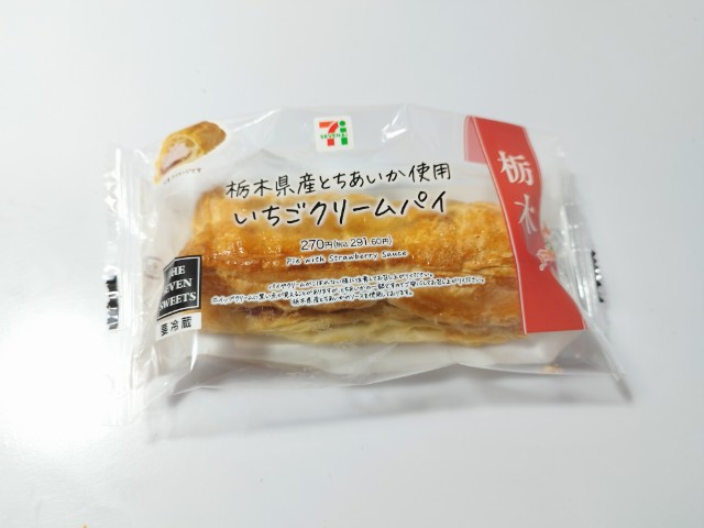 セブンイレブンの商品「栃木県産とちあいか使用いちごクリームパイ」を食べてみました。