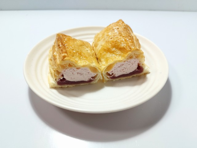 栃木県産とちあいかを使ったいちごクリームパイです。セブンイレブンでは11月4日からご当地食材&なじみのある地域メニューを各地区で発売する地域フェア「全国11エリアで開催!うまいもの決定戦」を開催していて、各地域ならではのご当地代表商品が発売されています。また、今回は「地元以外の人気商品も試してみたい」との声に応えて、各地域から選抜した全国選抜商品も発売しているそうです。ちなみに今回の商品はご当地代表商品の一つになっています。そんないちごクリームパイですが、パイ生地はサクッとした食感とほのかな塩味で、クセになる美味しさです。中にはとちあいかソース入りホイップクリームととちあいかソースが入っていて、とちあいかソース入りホイップクリームはふんわりとした食感といちごミルクの味わい、とちあいかソースはとろりとした食感といちごの甘酸っぱさで、生地とのバランスも良いです。大きさは一人分にちょうどよく、おやつや食後のデザートにオススメです。ぜひいちごクリームパイを食べてみて下さい。