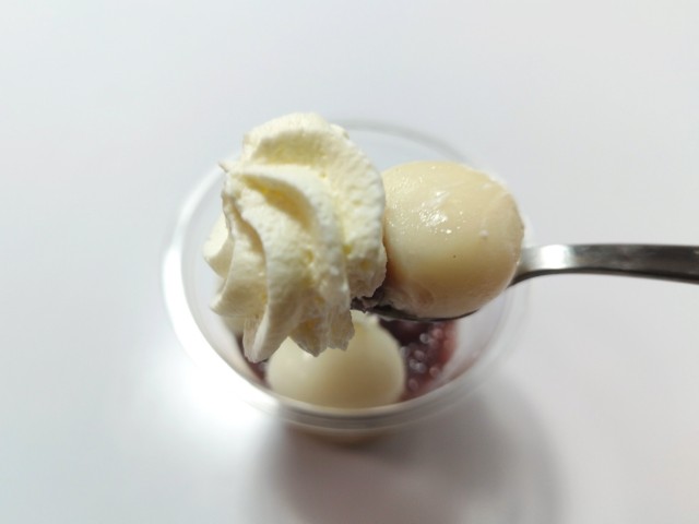 白玉とホイップクリームの下には粒あんときなこムースが入っています。