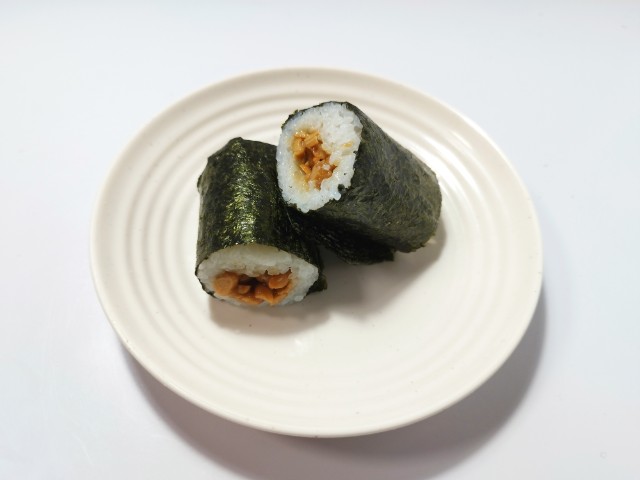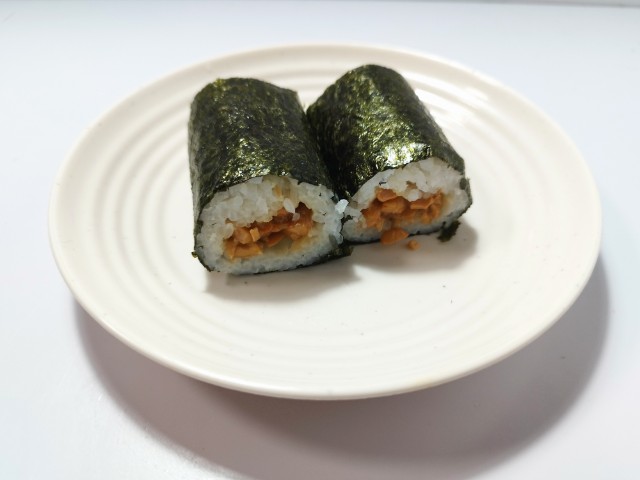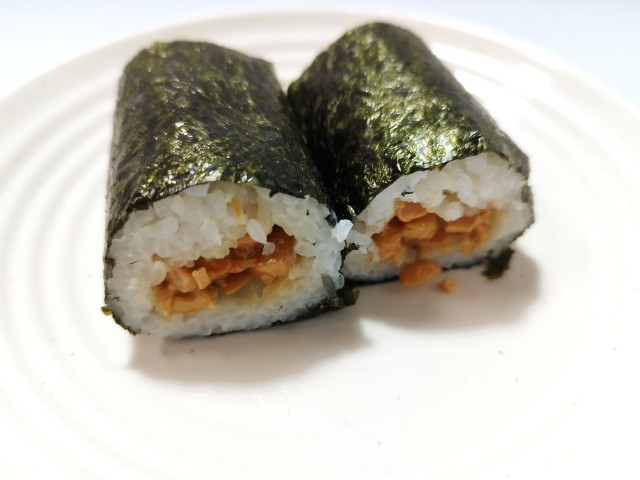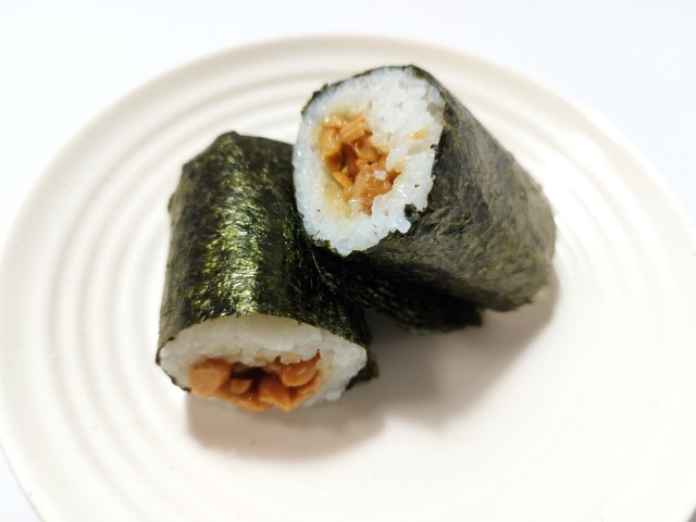 ファミリーマートの今週の新商品「増量 手巻寿司 納豆」を食べてみました。